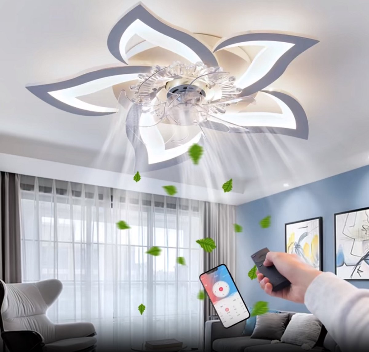 De 5 Lotus Ventilator Lamp is niet alleen een functionele verlichtingsoplossing, maar ook een stijlvolle toevoeging aan elk interieur. Met een slimme dimmer en 3 verschillende standen voor de ventilator, biedt deze lamp ultiem comfort en gemak. Of je nu aan het koken bent in de keuken of ontspant in de woonkamer, deze plafondventilator lamp zorgt ervoor dat je altijd de ideale verlichting en luchtstroom hebt. De strakke en eigentijdse uitstraling van deze lamp past perfect bij moderne interieurs, terwijl de veelzijdige functionaliteiten ervoor zorgen dat deze lamp een onmisbaar onderdeel van je huis wordt. De combinatie van een ventilator en een lamp in één maakt deze lamp niet alleen ruimtebesparend, maar ook energiezuinig. Kies voor de 5 Lotus Ventilator Lamp Plafondventilator Smart Lamp Met Dimmer 3 Standen Ventilator Keuken Lamp voor een optimale verlichting en ventilatie in elke ruimte van je huis.