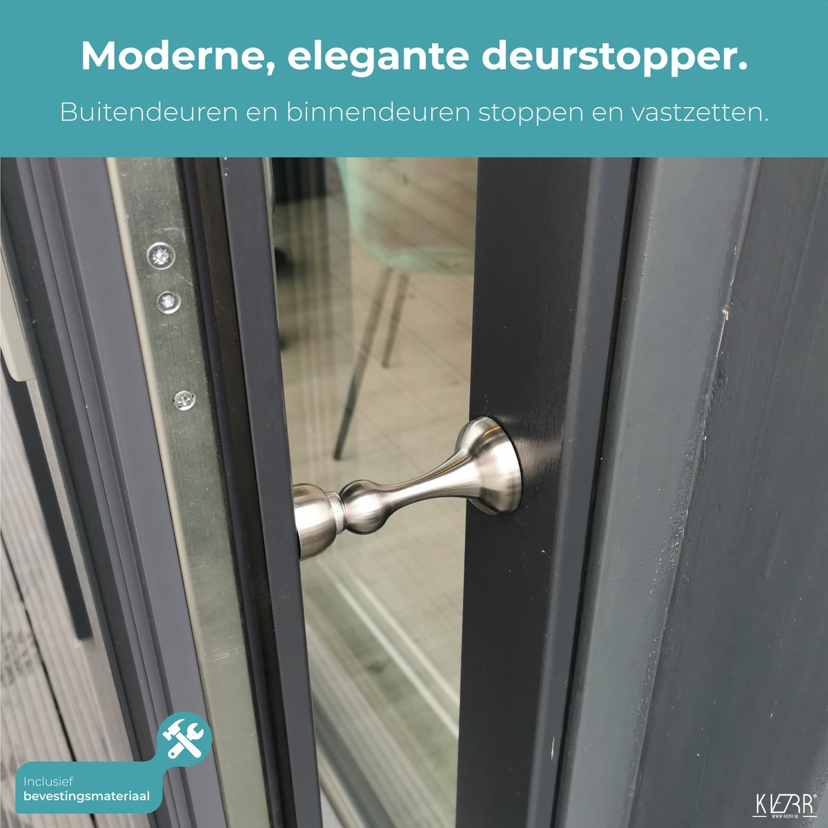 De Kierr® Heavy Duty Deurstopper is niet alleen functioneel, maar ook stijlvol. Gemaakt van hoogwaardig roestvrij staal, past deze deurvastzetter perfect bij elk interieur. De magnetische werking zorgt ervoor dat de deur stevig op zijn plaats blijft, zelfs bij sterke wind of tocht. Dankzij de handige windhaakfunctie kan de deur ook veilig worden vastgezet in open positie, waardoor frisse lucht gemakkelijk naar binnen kan stromen. Of je nu de deur open wilt houden voor ventilatie of gewoon een vleugje elegantie aan je interieur wilt toevoegen, de Kierr® Heavy Duty Deurstopper is de perfecte keuze. Investeer vandaag nog in kwaliteit en comfort met dit duurzame en betrouwbare product.
