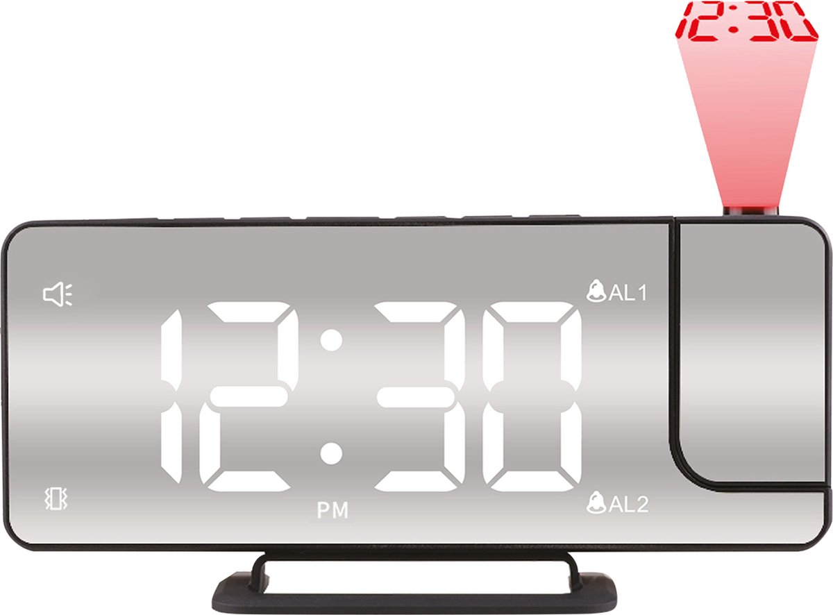 De digitale wekkerradio met projectie van Vivid is een handig en veelzijdig apparaat voor in de slaapkamer. Naast het wekken met je favoriete radiozender, kan deze projectieklok de tijd ook op het plafond of de muur projecteren. Zo hoef je nooit meer in het donker te zoeken naar de tijd. De helderheid van de projectie is aanpasbaar, zodat je altijd de perfecte instelling kunt vinden. Daarnaast heeft deze wekkerradio extra functies zoals een slaaptimer, waardoor je rustig in slaap kunt vallen terwijl je naar muziek luistert. En wanneer het licht uit is, kan de klok zelfs dienen als een handige spiegel. Met zijn strakke design en handige functies is deze Vivid projectieklok een must-have voor iedere slaapkamer! Maak je ochtenden een stukje aangenamer met deze digitale wekkerradio.